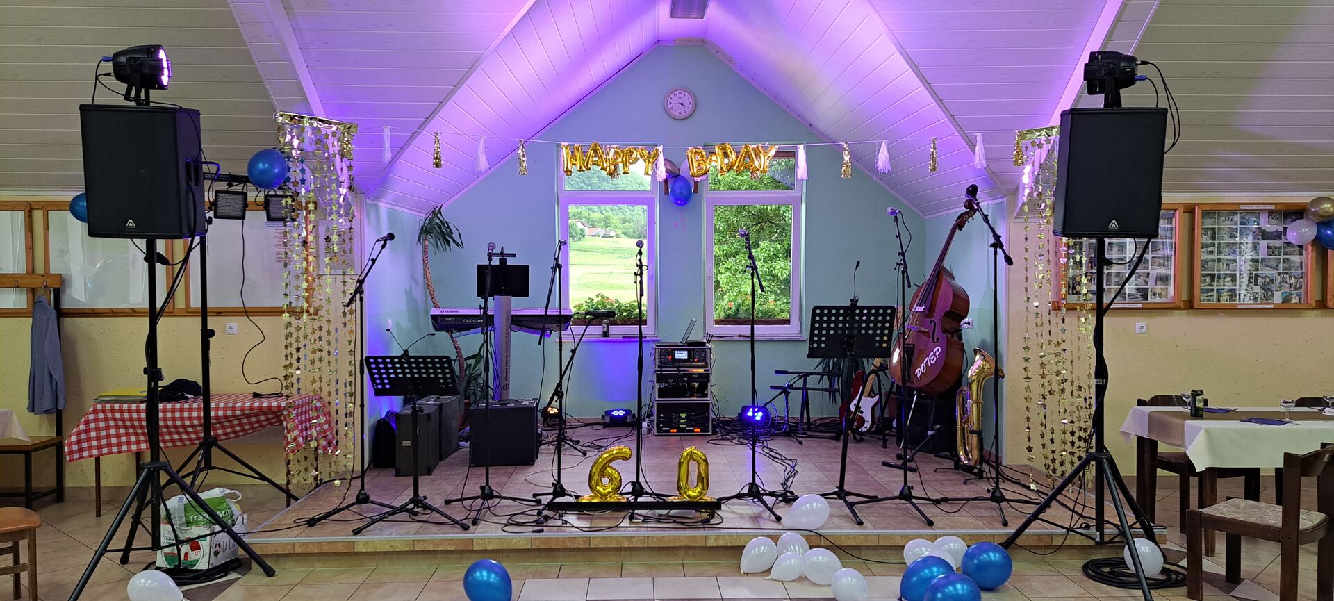 Ozvočujemo od manjših do srednje velikih prireditev (govori, glasbene skupine, zbori, okteti, solisti, koncerti, itd...). Razpolagamo s profesionalnim ozvočenjem Master audio več KW moči, kar je primerno za kapaciteto cca. 1500 ljudi in več. Svetujemo vam glede izvedbe prireditve.